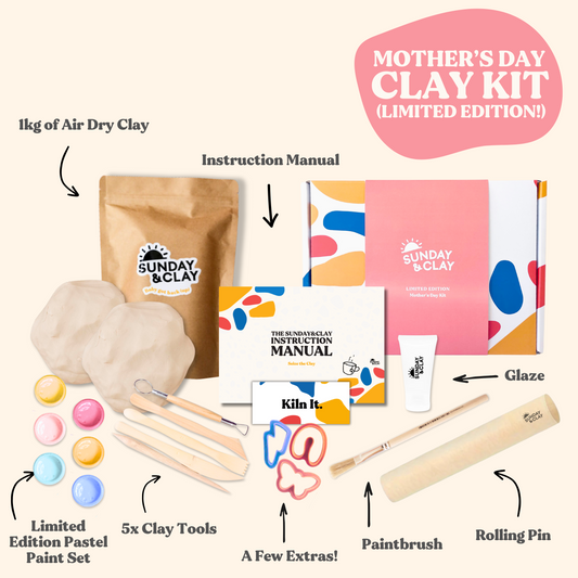 The Mini Clay Kit which is the popular choice for a kids birthday gift or rainy day school holiday project. Looking for a little project to get some me time, then our Singles Clay Kit is the perfect adult crafting mindfulness activity. Or if you're just plain not sure where to start - an absolute clay-beginner, then reach for our Starter Kit complete with Clay makin' tool, instructions and enough clay to craft 6-8 masterpieces.